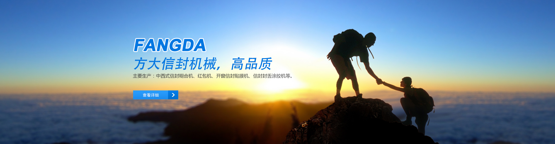 瑞安方大信封機械有限公司,是專業生產信封機糊合設備系列產品的企業,主要產品有:中西式信封糊合機、紅包機、開窗信封貼膜機、信封封舌涂膠機等。實力來自規模,品質源自專業。我廠擁有專業老練的工程設計人員,經驗豐富的生產安裝人員,嚴謹認真的質量檢驗人員,從而保證了所生產機械的優良品質。此外,我廠也將從技術上、性能上不斷改進提高,以更好的滿足客戶的需求?!翱蛻糁辽希諡楸尽笔俏覐S長期一貫的服務理念,從安裝、測試、保養、維修等售后服務,我們會給予客戶充足的信息資訊與技術支持,因此在業界獲得良好的口碑及信譽,您的滿意是我們的榮耀!歡迎您來電查詢、來人參觀,我們一定能給你滿意的答復!秉承“顧客至上,銳意進取”的經營理念,堅持“客戶為先”的原則為廣大客戶提供溫馨的服務。歡迎惠顧!